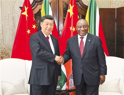 習近平指出,這是我第四次以中國國家主席身份訪問南非。10年來,我親歷了中南關系的蓬勃發展。中南關系之所以好、中南友誼之所以深,關鍵在于兩國兩黨在各自發展道路上休戚與共,結下了深厚友誼。當前,中國正在以中國式現代化全面推進中華民族偉大復興,南非正在探索符合本國國情的現代化道路。中方愿同南方一道,傳承友好、深化合作、加強協作,推動中南全面戰略伙伴關系不斷邁上新臺階,攜手構建高水平中南命運共同體。