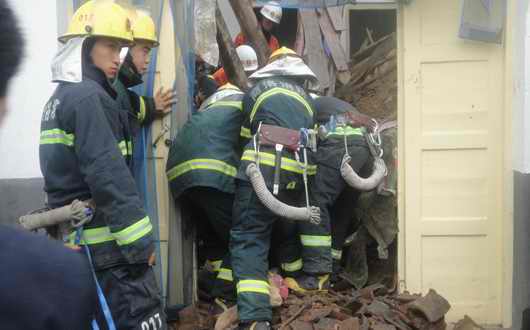 本網訊 (劉欣 方立)8月23日,商鞅廣場東一飯館房屋因雨倒塌,一人被掩埋。商州消防中隊接到報警后,15名消防戰士經過近20分鐘的緊急救援,成功將一名中年婦女救出。