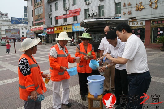 本網訊 (郭曉宏 魚亞鋒)連日來,城區持續高溫,市城管局從關心、關愛環衛工人入手,積極開展為環衛工人送清涼活動。想方設法為環衛工人排憂解難,采取中午上班發放防暑降溫物品、作息室配發電風扇等措施,為環衛工人提供盡可能的后勤保障服務,保障了環衛工人在高溫環境下的良好精神狀態,同時,要求城管監察支隊加對市區車輛的管理,保障環衛工人上班的安全問題。8月16日,市城管局領導又冒著酷暑高溫,親自將綠豆湯、藿香正氣水、綠茶和白糖等防暑降溫物品送到一線環衛工人手中,在這炎炎烈日讓她們真切感受到了關心、關愛和理解、支持。