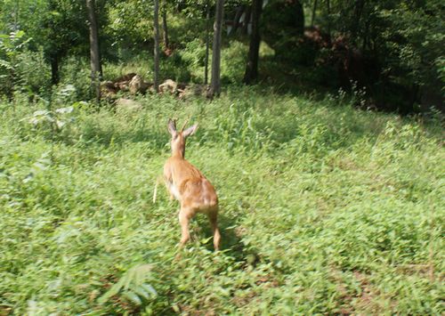 7月10日上午,洛南縣林業(yè)局接到群眾舉報,稱一只野鹿跑到了城關(guān)鎮(zhèn)八里村的公路上,村民怕過往的車輛把它撞傷,已經(jīng)將其圍堵到一所大院里面關(guān)了起來,請求林業(yè)部門幫助。經(jīng)野生動物保護站專家現(xiàn)場檢查確認,這是一只3歲左右的成年雄性狍子,俗稱草鹿,屬省重點保護動物,中等體型,體重大約25公斤左右,可能是因為受到了驚嚇,才從山上竄到了村莊。這只狍子只是皮膚受了點輕微擦傷,對整個生命體征不會造成危險,但由于狍子受到驚嚇,很恐慌,很暴躁,生命消耗比較嚴重,如果不緊急放生,很可能有生命危險,經(jīng)過咨詢當?shù)厝罕姡謽I(yè)局工作人員選擇了一個生態(tài)環(huán)境比較好的地方進行了放生。