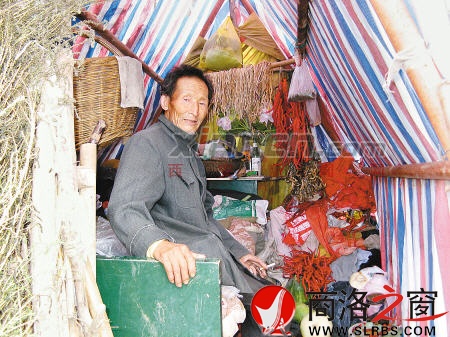 從劉灣街道辦附近的劉灣二號配電室往北走,是一條兩米多寬、直通南秦河的下河便道。11日下午,筆者沿著這條路一直往里走,路兩邊蒿草叢生,走了一段后,一個窩棚擋住了去路。一位路過的村民告訴筆者,這就是牛進才守護河道的住處。窩棚支在路上,鋼管扎成的支架,上面有一塊彩條布,外圍靠著幾捆柴草擋風,邊上的路僅容一輛架子車通過。“廚房”露天,路邊有一個鐵皮桶糊泥巴做成的簡易爐子。等了沒多久,牛進才推著車子回來。今年72歲的他頭發花白,身材顯得很單薄。在他的帶領下,筆者來到南秦河河邊,發現河堤上有一塊一畝大小的月牙形缺口,顯得頗為“礙眼”。“這都是以前采砂搞出來的。”牛進才說,“在我來這守河之前,劉灣一帶的村民經常騎著三輪車到這里偷著采砂,除了自己用還往出賣,沒幾年就把河堤‘啃’成這樣,還逐漸往附近的莊稼地延伸。今年年初,為了保護河道和耕地,村上決定派專人到河邊值守,考慮到我家里比較困難,人也還算實誠,就把這個活派給了我,每月發數百元錢。”接到這個任務后,閑不住的牛進才每天都往河邊跑。“剛開始你攔那些采砂的,人家根本不聽,挖斷路也會被重新填好,實在沒辦法,我就讓村里人給支了個窩棚,從家里拿了被褥和炊具,守在路上把關。”從此以后,牛進才天天吃住都在窩棚里,采砂的一看便無可奈何。