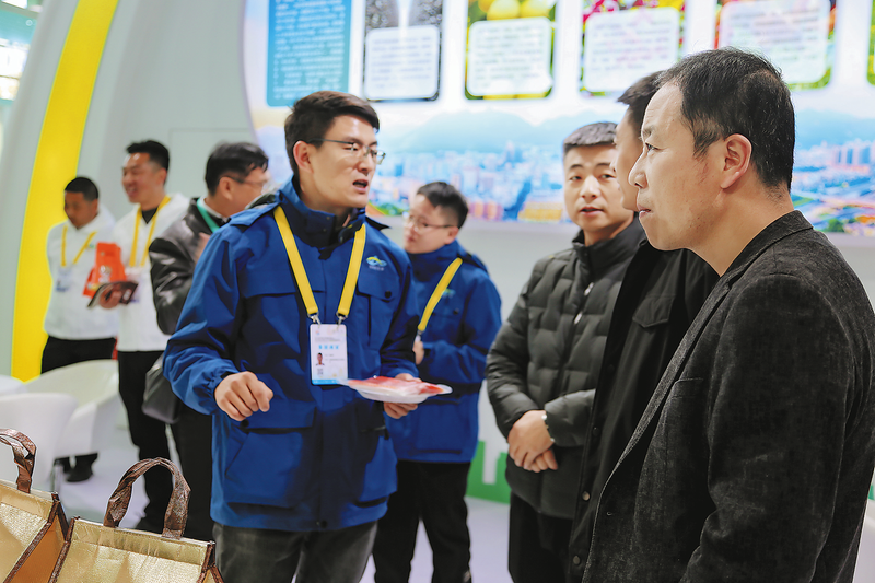 商洛企業相關負責人在展位前給客商介紹產品