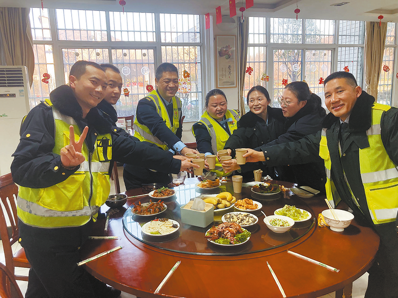 2月9日大年三十傍晚,伴隨著甲辰龍年春晚開場的倒計時,陜西交控集團西商分公司商州北管理所員工食堂內歡聲笑語,40多名在崗職工同舉杯、慶新春,一頓別樣的年夜飯拉開了序幕。春節是萬家團圓、辭舊迎新的喜慶日子,但他們依然堅守在自己的崗位上,開展路產巡查、道路養護、收費等工作,為司乘群眾的回家之路保駕護航。