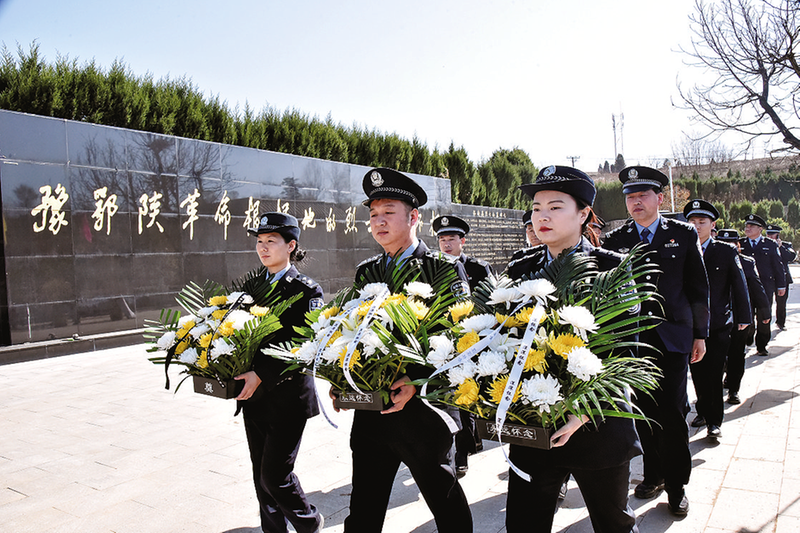 ?3月29日,洛南縣公安局組織機(jī)關(guān)、基層民輔警代表,先后前往商洛市烈士陵園、洛南縣烈士陵園以及三要、靈口等地,開展以“致敬·緬懷·奮進(jìn)”為主題的祭奠公安烈士、慰問公安烈屬活動(dòng),向革命烈士敬獻(xiàn)鮮花、默哀致敬、清理墳前雜草、重溫入警誓詞等,告慰烈士忠魂,表達(dá)對(duì)犧牲戰(zhàn)友的追思和懷念。 (本報(bào)通訊員 李重立 攝)