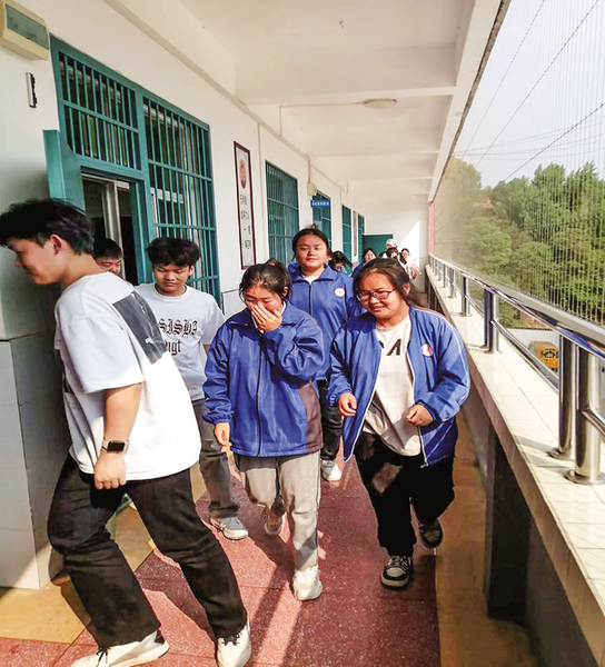 5月9日,商南縣高級職業中學組織開展防災減災應急疏散演練活動,以增強師生的防震減災安全意識,提高師生在災害來臨時的逃生自救、互救能力。 (本報記者 肖 云 攝)
