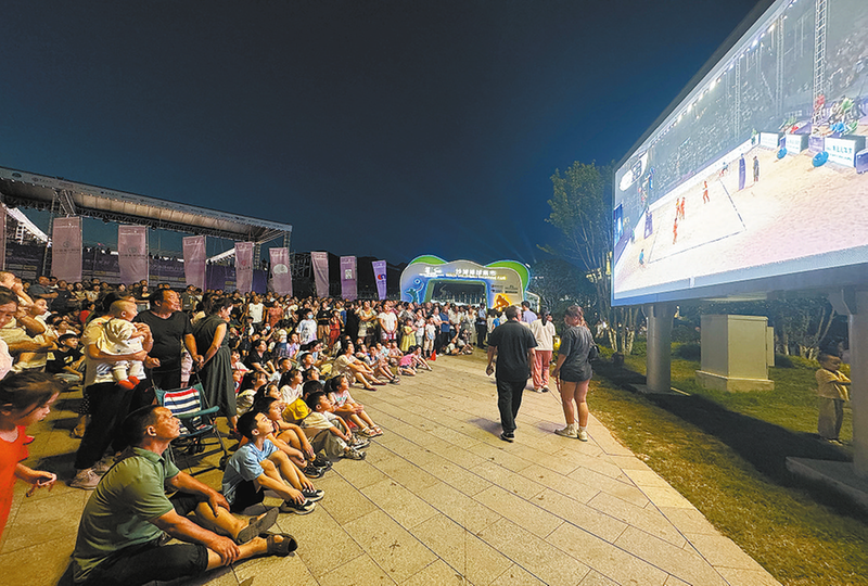 本報記者 方方 見習記者 楊若陽 8月28日,夜幕降臨后的沙灘排球集市人頭攢動。國外的運動員、外地的游客、本地的群眾……都因這場盛大而隆重的體育賽事歡聚在這里。 “老板,這個怎么賣?...