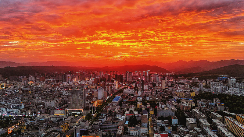 8月20日,夕陽西下,商州城區絢麗的晚霞染紅了半邊天,美麗壯觀。