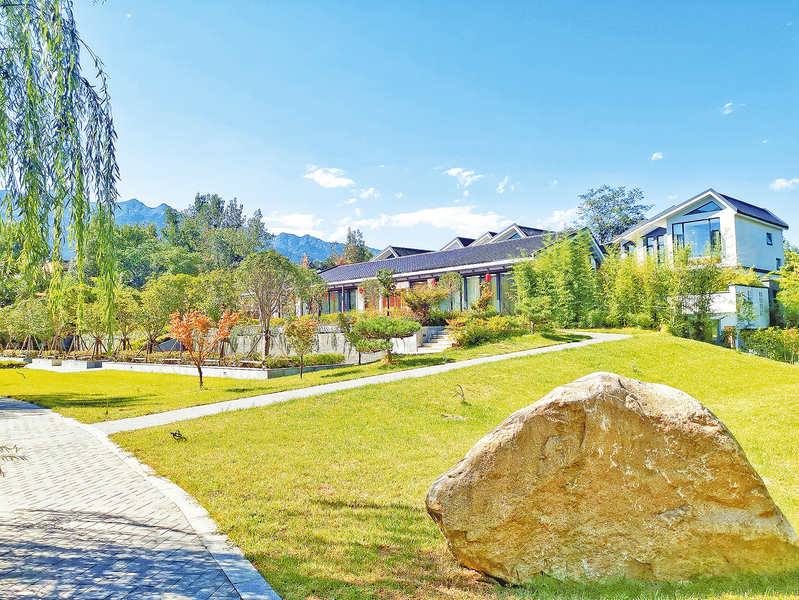 距方若·谷倉集度假民宿不遠處,同樣是利用閑置校園改造成的水麓藍山民宿,依山傍水,碧草如茵,這里庭院里的池塘、石階與花木相映,隱含著城市里少有的靜謐與禪意。水麓藍山民宿不僅獲評西安市精品民宿、藍田縣五星民宿,更成了游客心中的世外桃源,爭相來此打卡。