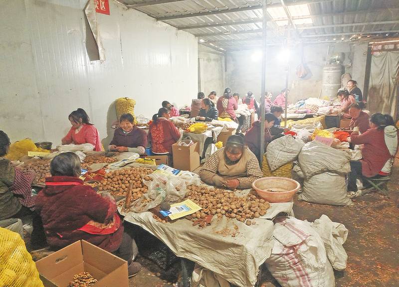 12月2日,丹鳳縣鐵峪鋪鎮(zhèn)中心村一處核桃加工作坊內(nèi),務(wù)工群眾正在加工核桃仁。據(jù)悉,該加工作坊由本地客商李樹廉創(chuàng)辦,帶動周邊20多名群眾就近務(wù)工,每人每天收入40元至60元不等。 (本報通訊員 田 東 攝)