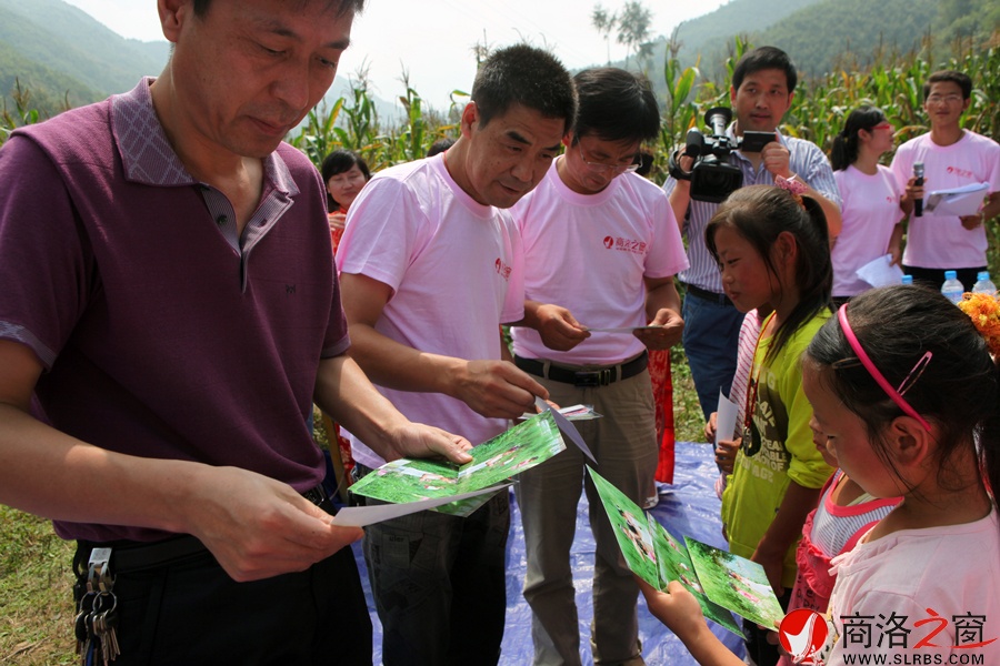 我們活動的源泉——牛建宏副總編,張志宏主任和牧戶關鎮中心小學校長閔斌老師為孩子們送照片