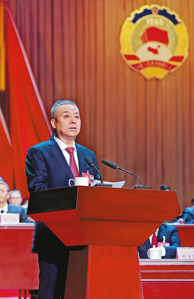 2月1日,市政協主席王寧崗代表政協商洛市第五屆委員會常務委員會向大會作工作報告。 (本報記者 李 敏 攝)