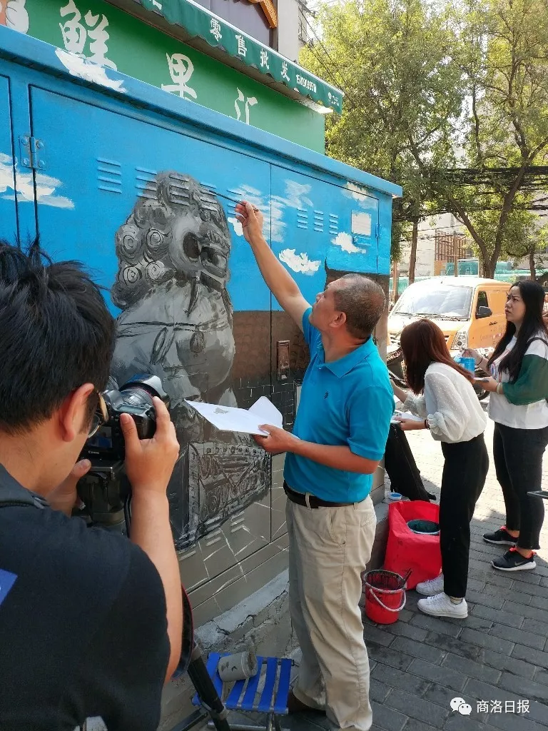2018年9月新華網現場采訪岳紅記博士的變電箱景觀繪制