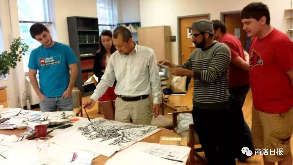在美國期間,他還先后為東南密蘇里州立大學做了《中國書法簡史》《北朝造像保護及其書法賞析》《中國歷史建筑理論——風水概述》《中國漢字與書法》等9場關于中國傳統文化的專題講座,現場還為美國年輕學子傳授中國書法和水墨畫技法,展示中國書畫藝術的神秘和魅力。