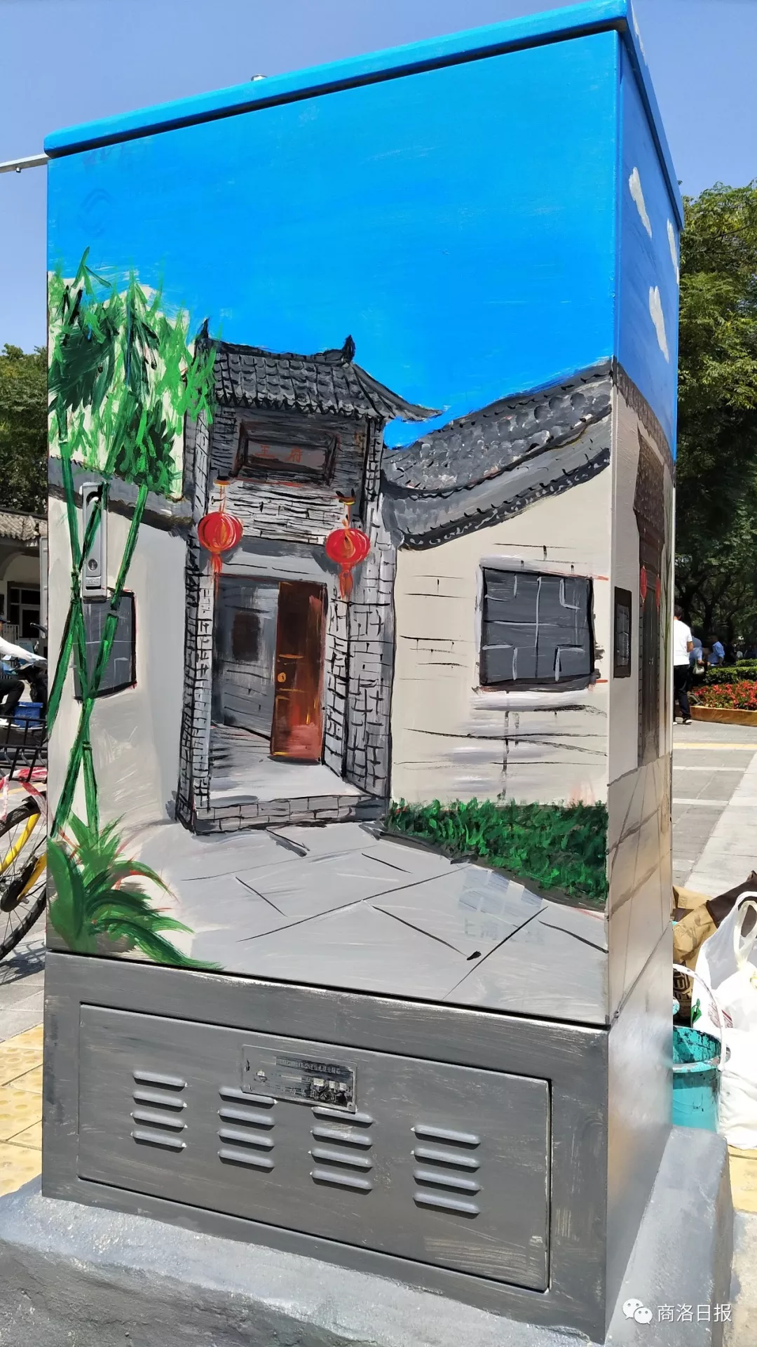 在青島考察期間,他拍了很多照片,回西安后又走訪陜西歷史博物館附近的主要街區變電箱現狀,然后再查閱其他城市的做法后,他覺得西安的變電箱景觀應該改變目前的現狀。于是,岳紅記在公眾號上發了一篇《“裝”出來城市景觀 》。文中指出,現代化城市中出現了一些共性景觀,電線桿、發射塔、垃圾箱、變電箱等,可這些硬“裝”在街道的設置其實與城市景觀不協調,可城市生活又離不開它們。