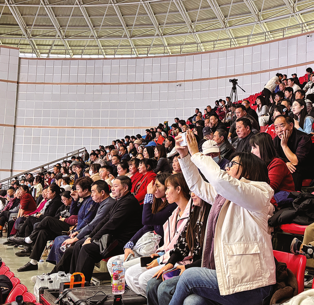 12月5日晚6時,開幕式尚未開始,市體育館已座無虛席。近千名觀眾早早入場等候,動感十足的開場音樂響起,當身著各色隊服的運動員精神抖擻步入賽場時,全場頓時爆發出雷鳴般的掌聲。伴隨著莊嚴的國歌聲,6歲的祝依冉小朋友,用稚嫩卻無比堅定的聲音高聲跟唱,清澈的童聲與全場的歌聲交織,成為開幕式上最動人的瞬間,也讓這份對祖國的熱愛、對賽事的期盼,深深扎根在每個人心中。