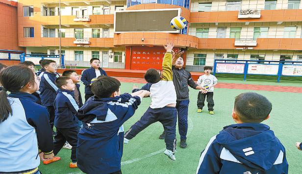 校園排球氛圍的濃厚,離不開體育教師團隊的引領。商州區第一小學13名體育老師積極參與專項培訓、考取裁判員資質,還在各類賽事中擔當裁判,同時為校外單位提供球隊技能指導、繪制標準排球場地,以專業素養彰顯體育教師的責任與擔當。“排球的氛圍在商洛已經生根發芽,我們學校的老師與學生都很熱愛排球運動。”體育老師呂班介紹,針對不同年齡段學生,學校設計了分層教學內容,整體課程安排著重培養學生的運動興趣。