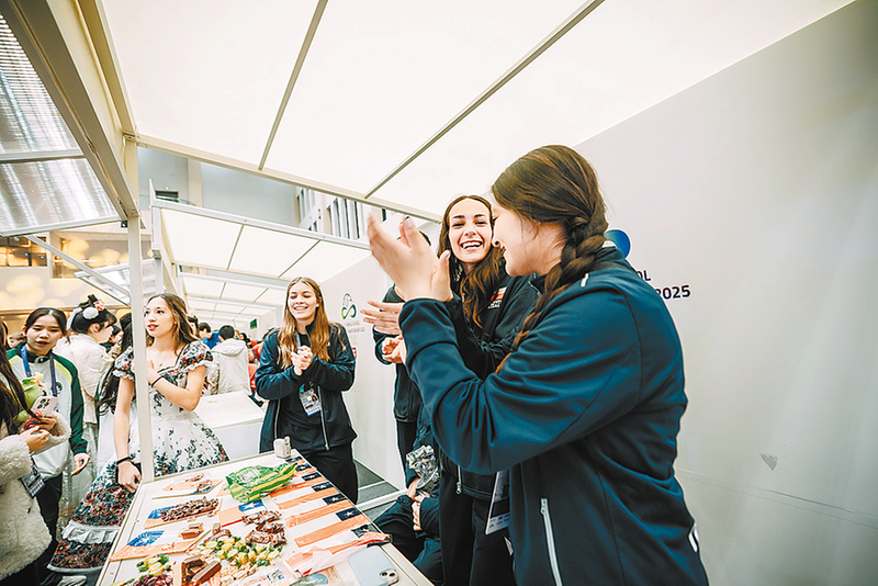 ②12月9日,在“國家之夜”現場的文化展示區域,有的參賽隊伍帶來了巧克力、咖啡等特色產品,吸引了眾多參賽隊員駐足品嘗。