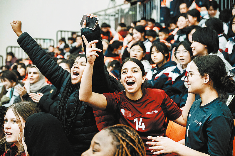 ⑨12月11日,看臺上,觀賽隊伍為場上球員的出色表現吶喊喝彩。