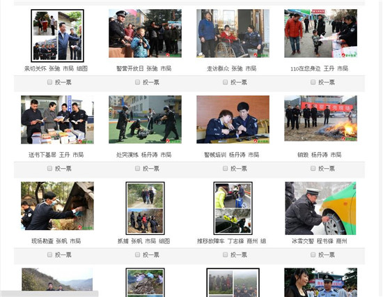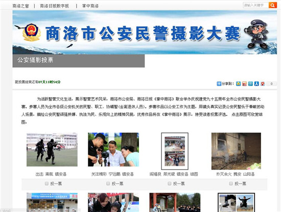 本次攝影大賽由市公安與商洛日報《掌中商洛》欄目合作組織舉辦,面向全市公安民警,作品內容以公安業務工作為主。所征集作品經市局初評后由商洛日報社《掌中商洛》向社會各界發布,并組織社會各界和廣大網友進行投票評選。在近10天的投票期間,點擊率近3萬人次,投票數達13872票。投票結束后,市公安局邀請市攝影家協會多名攝影專家組成評審組對入選作品進行認真、細致、專業的評選,共產生出了4個獎項,其中一等獎1名,二等獎2名,三等獎3名,優秀獎10名。