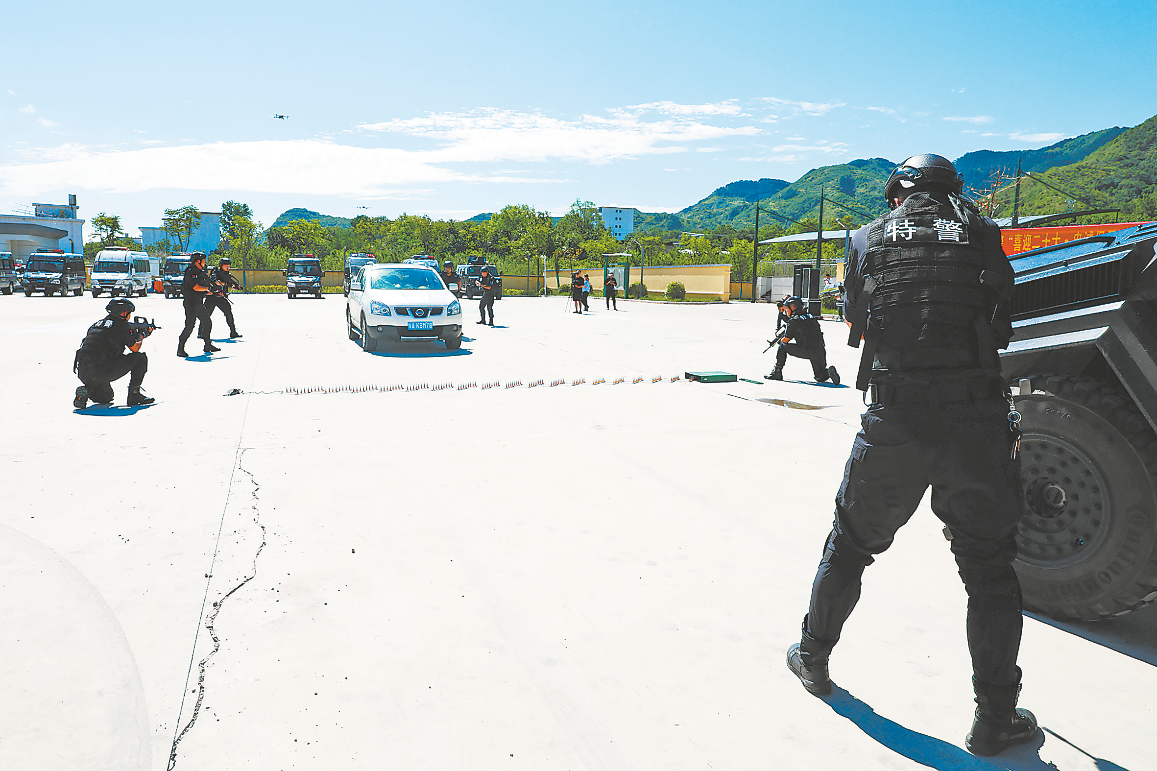 活動中,參賽隊員先后實戰演練了處置大規模群體性事件、設卡武裝盤查、街面巡邏盤查、無人機偵查反制以及最小作戰單元處置爆炸、縱火、駕車暴力沖撞等8個科目,完成了5公里武裝越野、綜合體能、手槍分解結合精度射擊、突擊步槍應用射擊、狙擊步槍應用射擊等5個比武競賽科目。參演參賽隊員充分發揚“特別能吃苦、特別能戰斗、特別能奉獻”的敬業精神,實現處突集結迅速、指揮配合有力、協同作戰有序、運轉調度高效,達到了比武競賽活動預期效果。