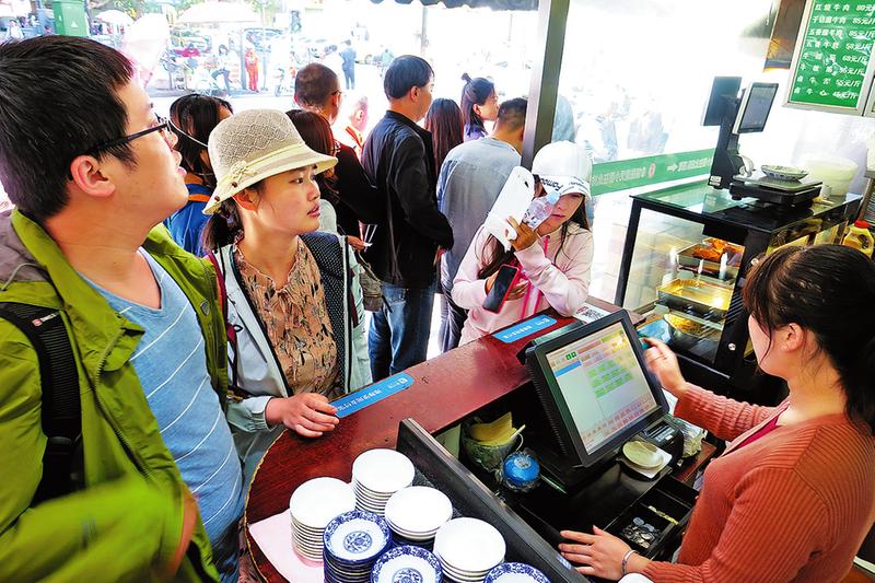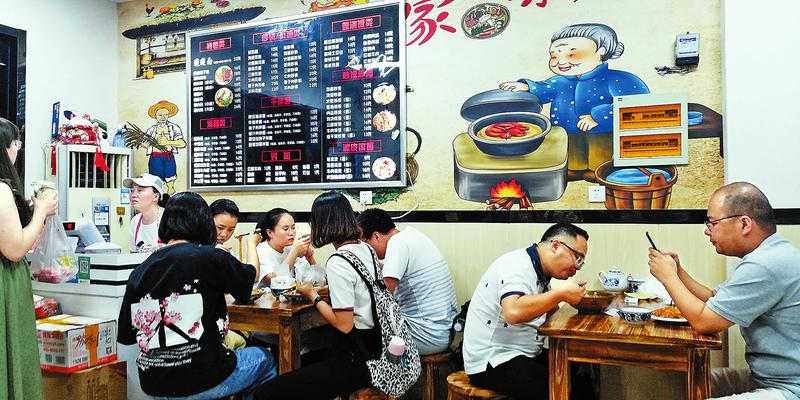 南京是一個(gè)包容性極強(qiáng)的城市,南北菜品匯集于此,同時(shí)快節(jié)奏的都市生活,也為丹鳳人經(jīng)營的面食提供了市場(chǎng)。這是著名的南京大排檔,來南北客,品南北菜。(8月26日攝)