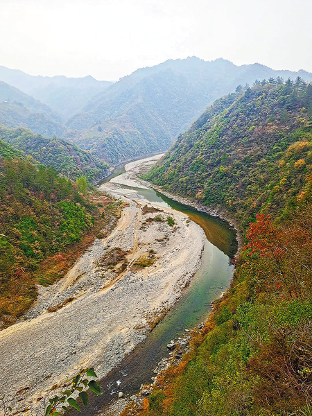 在這個(gè)千山沉靜、萬壑掛彩的季節(jié),我冒著沉沉的霧氣,從西磨溝口伴著武關(guān)河順流而下20多公里,來到武關(guān)河下游第一村——商南縣金絲峽鎮(zhèn)二郎廟村。