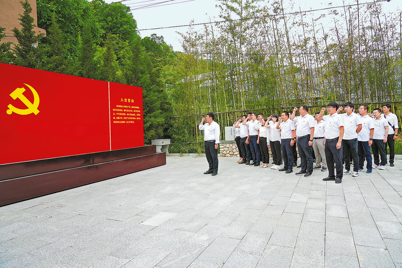 在“七一”建黨節即將到來之際,為慶祝建黨102周年,傳承黨的優良傳統,激勵黨員干部凝心聚力、提振精神,連日來,我市各地各部門黨組織紛紛開展形式多樣、豐富多彩的慶祝活動。圖為丹鳳縣竹林關鎮機關黨支部組織全體黨員重溫入黨誓詞。(本報通訊員 雷明欣 攝)