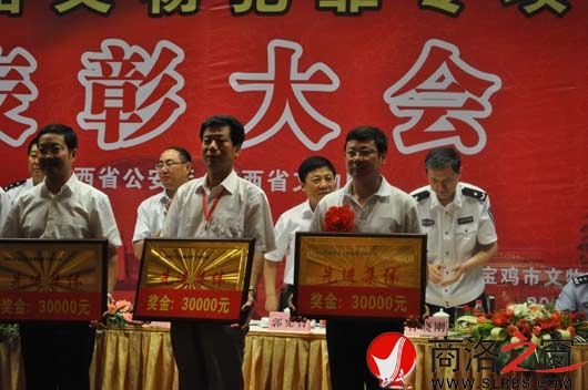 本網(wǎng)訊(任 慧)近日,省文物局、省公安廳聯(lián)合在寶雞市召開了2011年全省打擊文物犯罪專項(xiàng)行動表彰大會,洛南縣文廣局、公安局雙雙榜上有名,受到表彰獎(jiǎng)勵(lì)。
