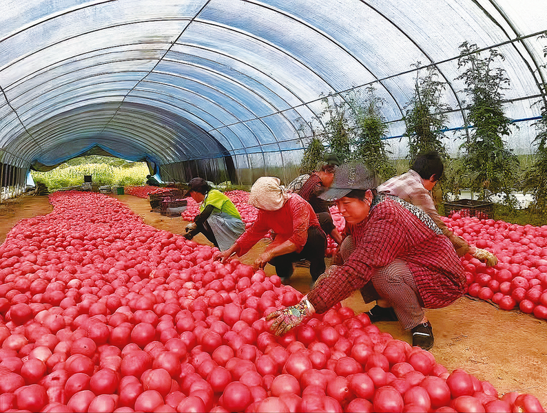 近期,洛南縣古城鎮(zhèn)中聯(lián)村寧農(nóng)瓜果蔬菜產(chǎn)業(yè)示范園大棚里的西紅柿迎來了豐產(chǎn)季。10月18日,示范園內(nèi)10多個村民正在忙碌地采摘、運送、分揀成熟的西紅柿,大棚里一派豐收的景象。