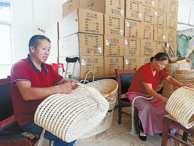 而之前,韓運山的生活可不是這樣。因為腿部殘疾,他一直在家沒事干,日子過得并不好。洛南縣巧手工藝品有限公司負責人屈軍俠了解到他家的情況后,親自上門動員,邀請他到公司上班,并派公司技術員教他編織技巧。通過學習,韓運山很快掌握了草編手藝,生活有了目標,日子過得越來越有奔頭。