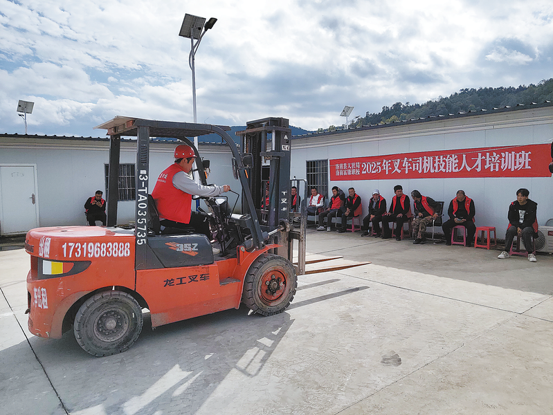 為全面打贏穩就業促增收硬仗,洛南縣以“技能照亮前程”為主題,聚焦農村勞動力、脫貧群眾等重點群體就業需求,積極開展職業技能提升培訓,助力更多群眾掌握一技之長,實現就業創業。圖為10月15日,洛南縣人社局聯合洛南富康職業技能培訓學校,在石門鎮易地搬遷社區為30多名群眾開展叉車司機培訓。(本報通訊員 王建榮 攝)