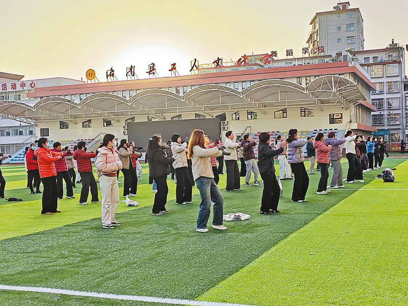 近日,改造一新的洛南縣工人文化宮正式投入使用。據了解,該工人文化宮由原縣體育場改造而成,其功能集職工服務、教育培訓、健身運動和文化活動等于一體,為普惠性服務的公益性場所。圖為群眾在活動場地健身。