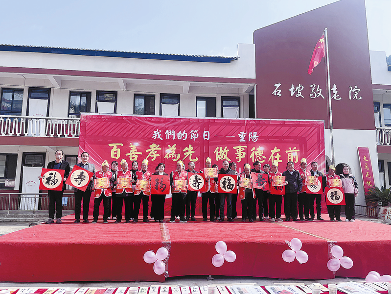 10月24日,石坡敬老院舉行“百善孝為先·做事德在前”實踐活動。圖為敬老院為老人送“福”“壽”。