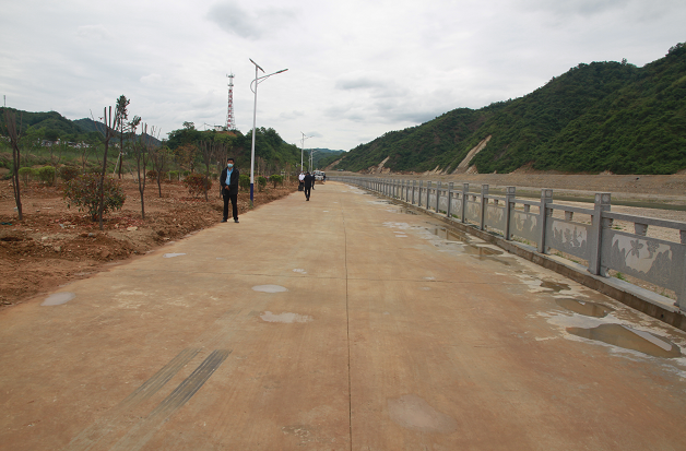 在過風樓鎮龍山大道,觀摩了龍山休閑觀光長廊項目。項目一期規劃整治丹江河堤沿線1.4公里土地,栽植各類綠化苗木2000余棵,總綠化面積1.35萬平方米,新建空山閣、涼亭、游步道、休息區等配套設施,打造河堤漫步休閑區;依托龍祥家庭農場,打造采摘體驗區。項目二期,在河堤沿岸淺灘修建水上樂園,打造丹江水上娛樂區。該項目的實施,將大大改善集鎮面貌,提升集鎮品味,豐富群眾生活,推進農旅融合,拓展群眾家門口的“微幸福”空間。