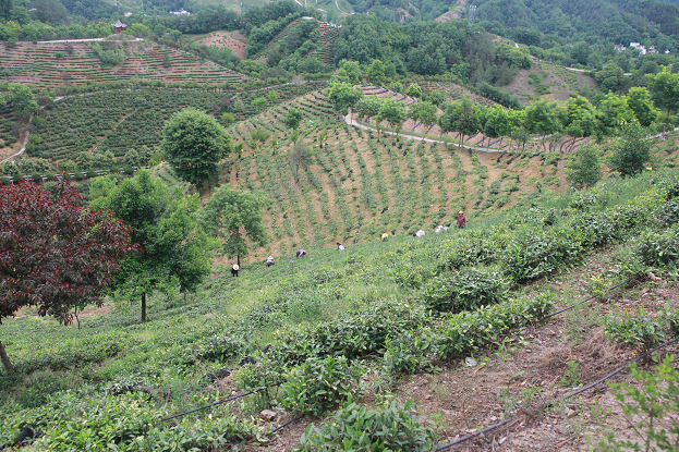 在試馬鎮紅廟村西莊,觀摩了省級農村產業融合發展示范園項目。該項目以紅廟村為核心,以郭家埡、大坪村為兩翼,輻射帶動荊家河村、觀音堂村、毛河村和試馬社區。項目新建2個智能化育苗溫棚、良種標準化生態茶園3000畝,配套建設產業路、觀光路和微滴灌設施;對園區內6個茶葉加工廠進行技改,新建1000立方米以上的茶葉冷藏保鮮庫,并開發茶食品、茶飲料等產品。示范園今年2月動工建設。目前,一期已發展無性系生態茶園600畝,硬化馬泉山產業路4.6公里,新修游步道5600米、防洪渠3270米、護墻壩660米、茶園排水溝4000余米,打通了紅廟西莊茶園產業路1.8公里,新修蓄水池8個、停車場1個、旅游公廁3座、觀景亭2座,累計投資2600多萬元。