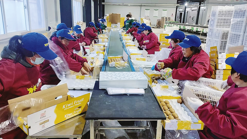 務(wù)工群眾在車間對(duì)狝猴桃進(jìn)行分揀包裝