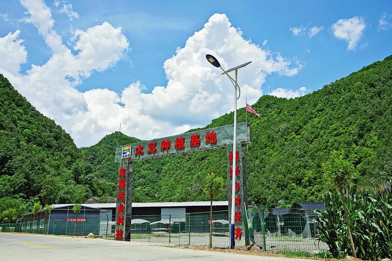 7月9日,晴空萬里。走進山陽縣小河口鎮,整齊亮麗的移民小區映入眼簾,一座座黑色大棚引人注目,棚內木耳長勢喜人。