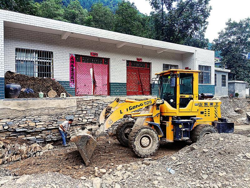 8月11日早晨,記者驅車來到山陽縣高壩店鎮雙寨村大西溝,雖距離7月23日已過18天,但這個曾經美麗寧靜的村莊仍是滿目瘡痍:破碎坎坷的石塊路、被掏空的路基、奄奄一息的玉米、被摧毀的房屋……“大家要堅定信心,如今政策越來越好,有什么困難就積極跟村干部反映,我們一起解決問題。災情發生了,我們不能等、靠、要,我們要疏通河道,積極開展生產自救,重建家園!”此時,在大樹的綠蔭下,村民成行而坐,高壩店鎮黨委書記董善平正跟村民講解著搬遷政策、生產自救相關事宜。