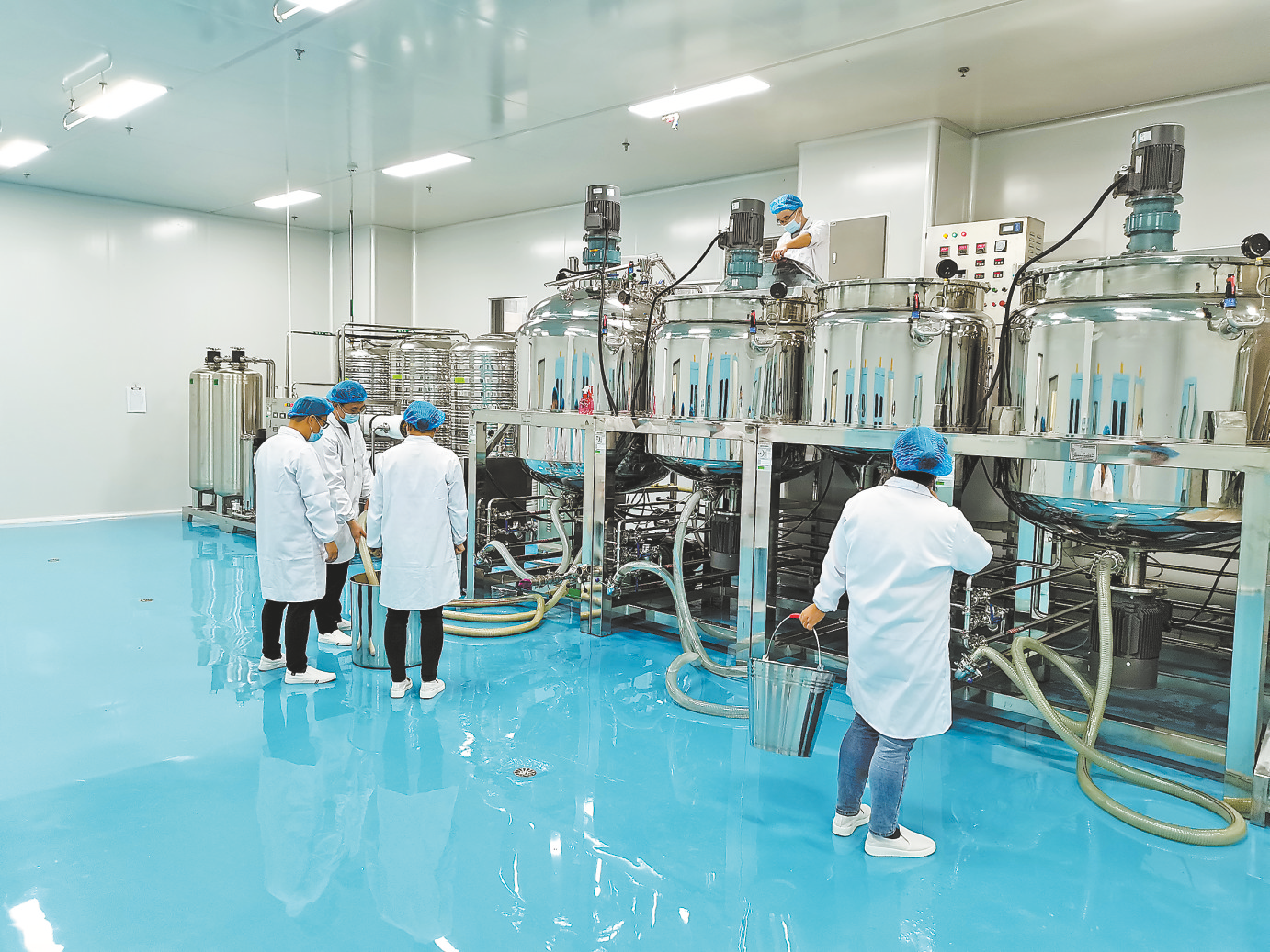 11月18日,記者來到山陽縣高新技術開發區,一棟現代風格的大樓聳立在眼前。樓頂上,豐上鑫和四個鍍金大字格外引人注目。走進陜西豐上鑫和健康產業有限公司,大樓內窗明幾凈,過道里十分安靜,幾乎聽不到任何聲音。隔著落地玻璃,只見凈化車間擺放著整齊潔凈的生產設備,身著白色工作服的工人在生產線上忙碌。