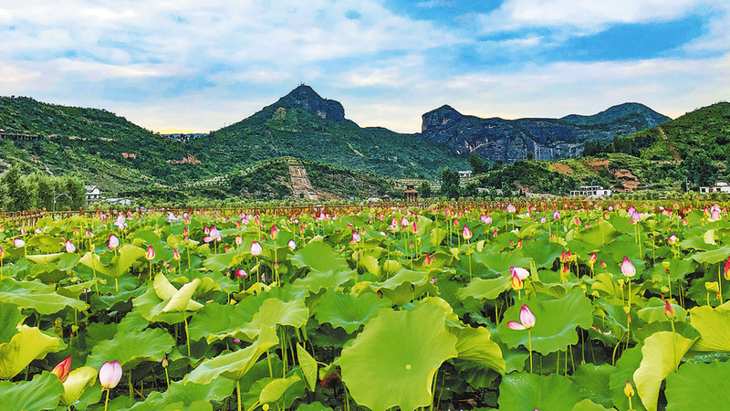 綠樹碧云,山奇峰秀;草木青翠,小溪?dú)g唱;千畝荷塘里,花木搖曳生姿;月亮灣瀑布濤聲轟鳴,潭水波光粼粼……行走在鄉(xiāng)村公路上,迎面而來的鄉(xiāng)親的笑意寒暄,隨處都能感受到生態(tài)、人文的印記。農(nóng)旅融合形成的生活美學(xué),讓法官廟村煥發(fā)出無限新生機(jī),成為名副其實(shí)的城市“后花園”。