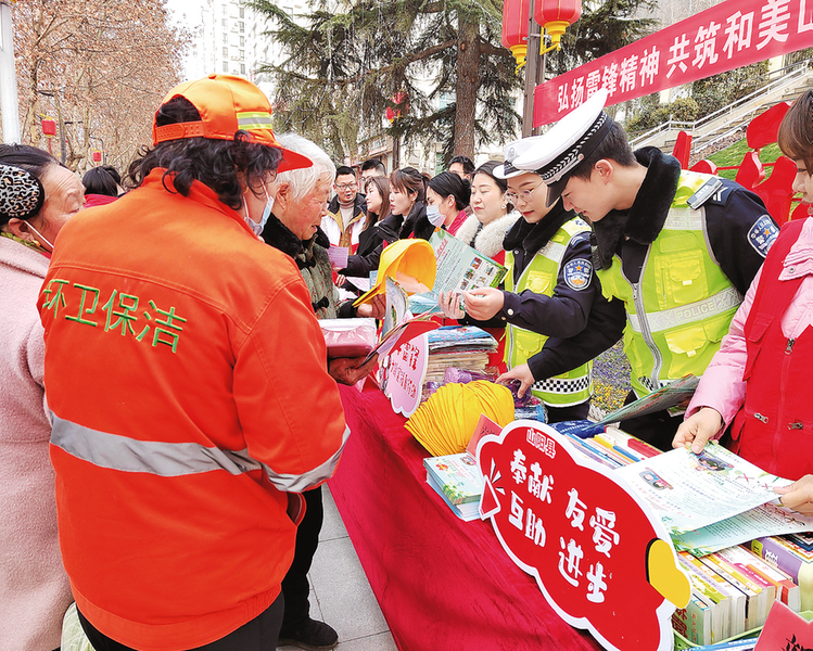 向廣大干部群眾發放《山陽縣“學雷鋒·文明實踐我行動”活動倡議書》