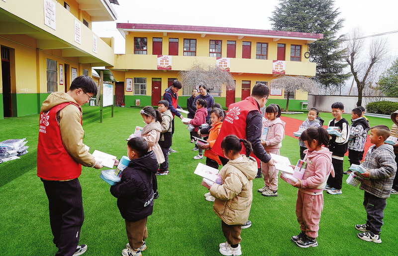 “向陽花”新時代文明實踐志愿服務隊給孩子們送去書籍、文具等愛心物資