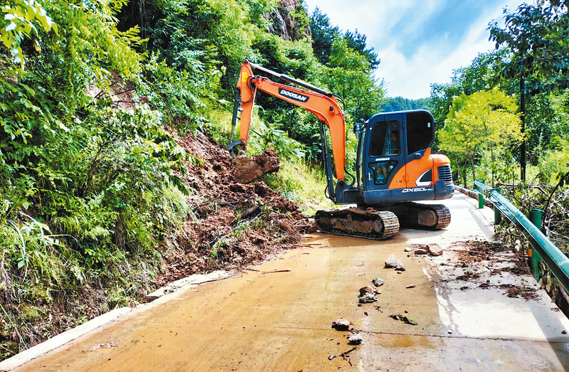 7月22日,山陽縣王閻鎮(zhèn)靳家河村水毀路段,鎮(zhèn)村干部正組織人員采用“人工+機械”方式,抓緊修復和搶通公路,全力以赴保障群眾恢復正常生產生活。 (本報通訊員 蔡彥君 攝)
