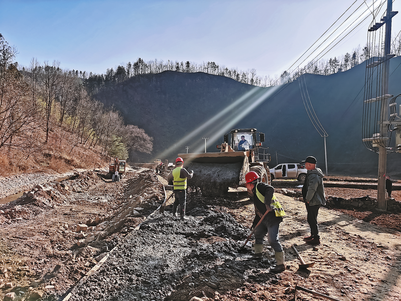 12月18日,在山陽縣兩嶺鎮,施工人員搶抓晴好天氣,對去年汛期水毀道路進行硬化施工作業,加快推進災后基礎設施重建。今年以來,該鎮累計修復道路31.5公里、河堤6.5公里,新建橋梁5座,鋪設供水管網18.7公里,以實干實績持續筑牢民生保障根基。 (本報記者 馬澤平 攝)