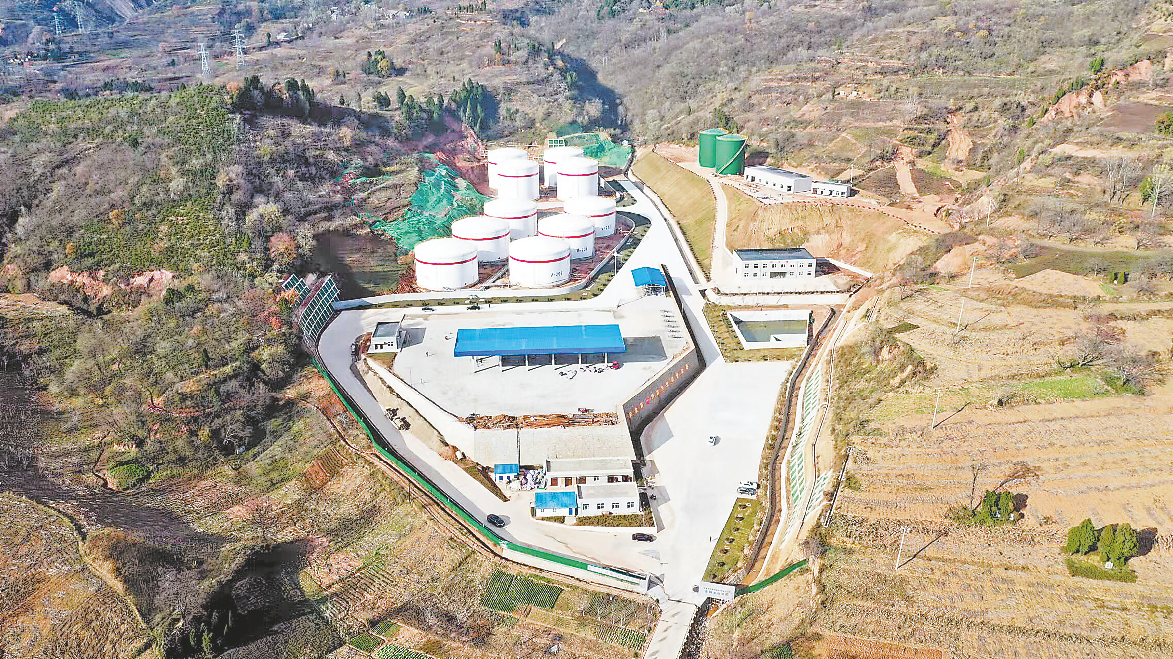 開動項目引擎,搶抓發展機遇,大趙峪街道辦事處冀村呈現出一派火熱的建設景象。萬噸油庫項目是商州區實施的重點能源儲備招商項目,也是“十四五”期間全省第一家國家二級成品油油庫項目。該項目由安徽化工集團和陜西石化公司,聯合本地企業共同組建的商洛飛舟公司投資建設,占地260畝,總投資6億元。目前,已建成10座5000立方米儲油罐、2座2500立方米消防水罐,消防泵房、事故池、綜合辦公樓、油品裝卸區、化驗室、結算中心等附屬設施已完工,具備了投產運營條件。