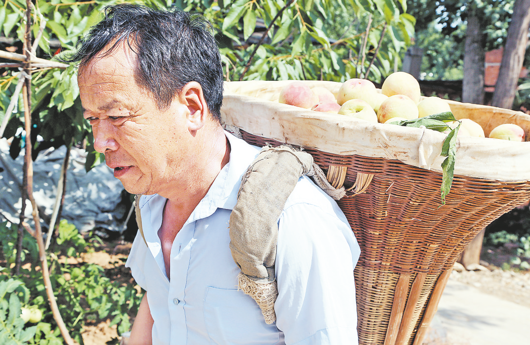 張青良背著桃子從地里回家
