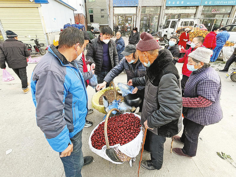 價(jià)格實(shí)惠的大棗和葡萄干吸引多人購(gòu)買