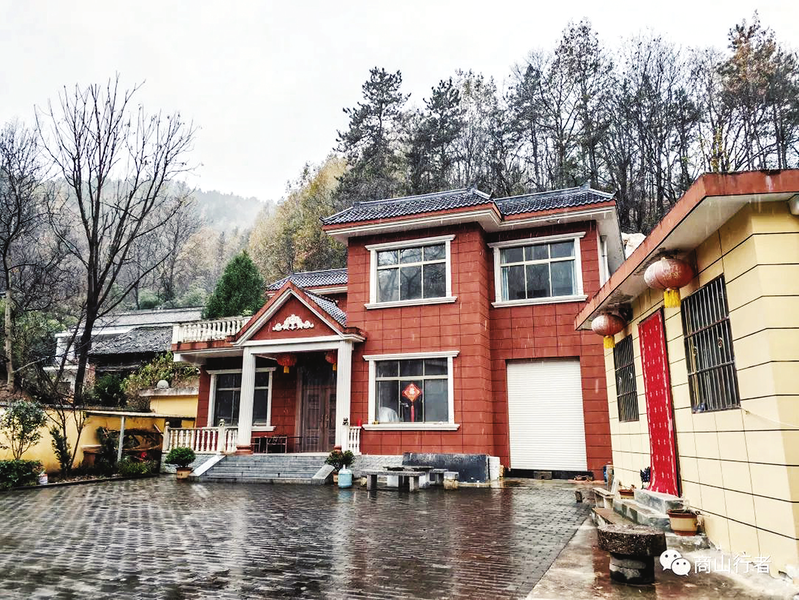 我們冒著雨夾雪,走在主溝的水泥路上,路邊是一行核桃樹,葉子已經落盡,耕地平坦,莊稼收過,民居臥在坡根,多為磚混結構,還有一棟漂亮氣派的別墅。