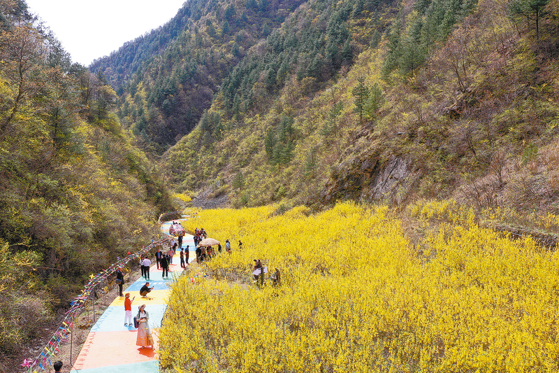 連翹花是我市的市花,連翹更是一種顏值與價值并存的農業產業。“連翹花好看,一年還讓我多掙1萬多元錢,這四五年里,我家種了10多畝連翹了。”韓峪川村種植戶蘇小云高興地說。