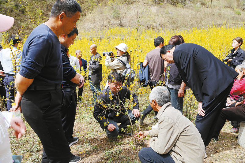 4月8日,商州區牧護關鎮首屆連翹花觀賞節在韓峪川村開幕。活動現場,省科技廳授予林聯公司“陜西省商州連翹科技示范基地”,陜西中醫藥大學向韓峪川村委會和林聯公司授予“生態種植連翹中藥材生產示范基地”。為促進連翹中藥材產業提質增效,陜西中醫藥大學與韓峪川村簽訂了打造連翹生態種植示范基地協議,醫藥企業與種植戶簽訂購銷協議,相關專家現場還為種植戶指導連翹種植技術要點。